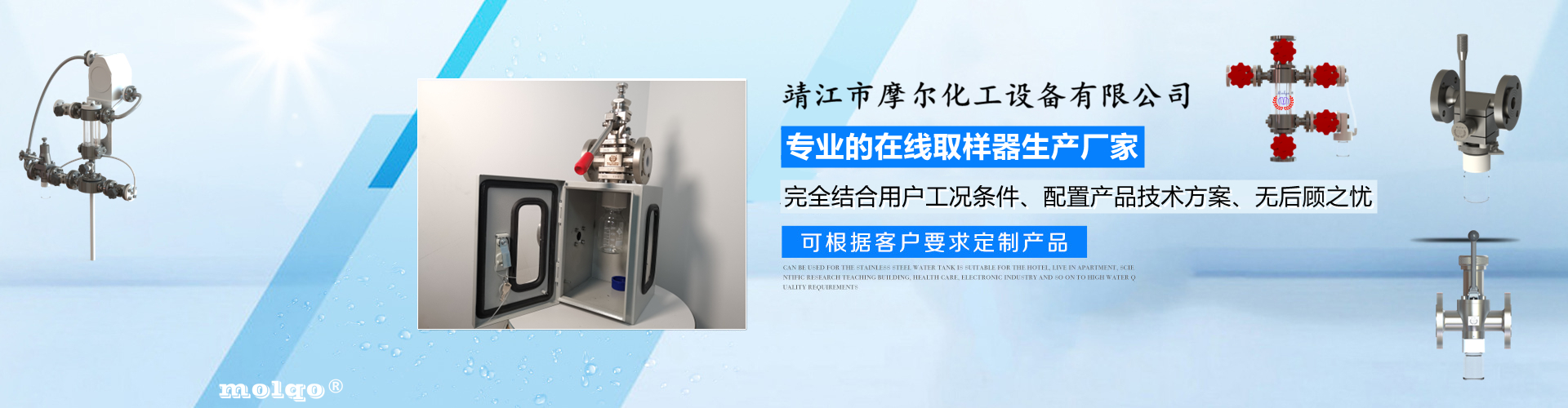 靖江市摩爾化工設(shè)備有限公司位于蘇中明珠——江蘇省靖江市城南工業(yè)園區(qū)東進(jìn)路北側(cè)天元艾爾瑞內(nèi),另有生產(chǎn)基地位于靖江市經(jīng)濟(jì)技術(shù)開發(fā)區(qū)新號路1號鼎電科技園內(nèi)。我公司由數(shù)名長期從事化工生產(chǎn)、氟塑襯里模具開發(fā)以及機(jī)械自控設(shè)備的專業(yè)人員共同合作成立,致力于提供客戶最優(yōu)的高效在線取樣、反應(yīng)及精餾分離設(shè)備,為客戶提供合理的設(shè)備選型方案,以幫助客戶提高綜合生產(chǎn)效率以及改善生產(chǎn)現(xiàn)場環(huán)境為目標(biāo)。 本公司主要制造及銷售的產(chǎn)品有:釜用在線取樣裝置,管道取樣閥,釜用清洗噴淋裝置、搪玻璃設(shè)備、GMP專用搪玻璃設(shè)備、氟塑襯里設(shè)備、攪拌器、釜用機(jī)械密封、氣動閥門及搪玻璃管道、襯氟閥門管道、非標(biāo)不銹鋼容器,精餾塔塔器、片式冷凝器及PTFE密封件、鋯、鈦、鉭、鎳等加工件制品。我司是一家集研發(fā)銷售、設(shè)計(jì)咨詢服務(wù)于一體的專業(yè)···
